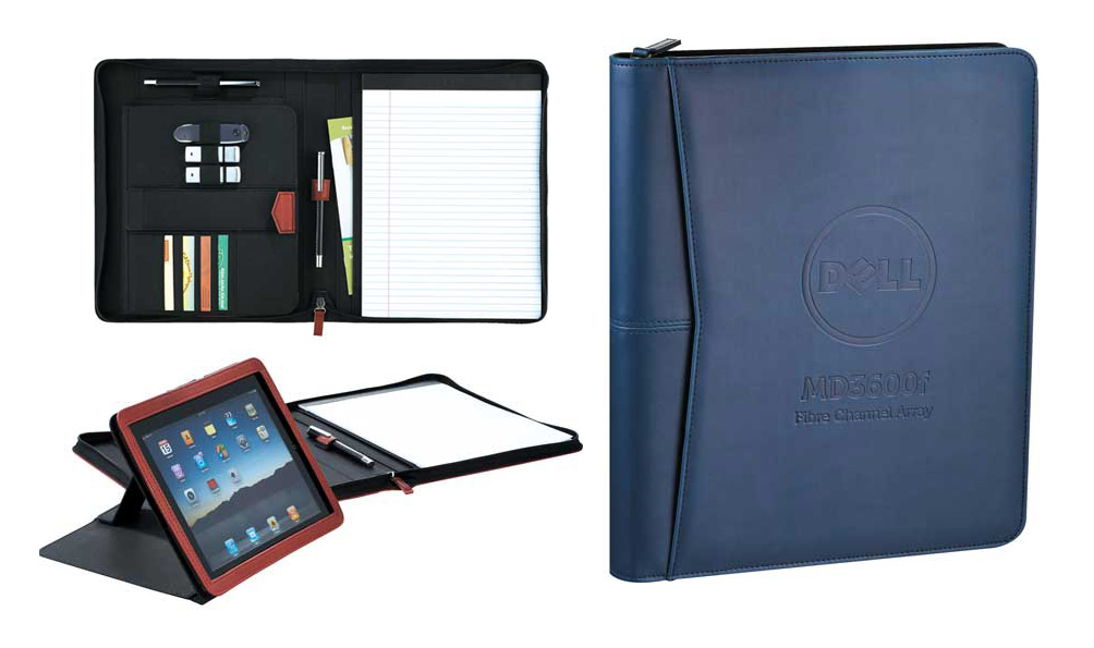 Leatherette Zip Portfolio iPad Stand