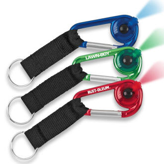 - bright LED flashlight - color matching LED - large logo area - replaceable batteries included