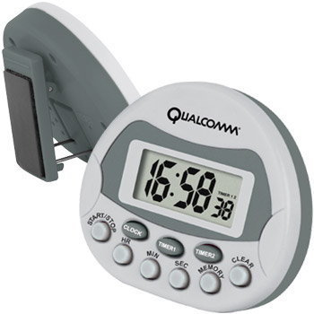 DUAL COUNTDOWN TIMER - dual timers with clock - displays hours, minutes & seconds - countdown any time from 99 minutes - repeat, alarm & pre-alarm - belt clip, desk stand & magnet back