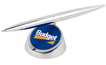 SPINNING DESK PEN - metal ballpoint pen floats & spins - heavy metal base with color insert